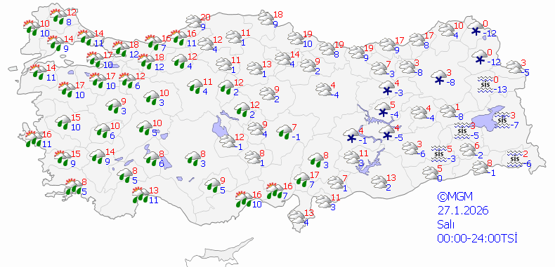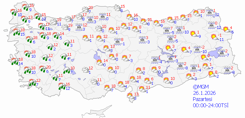 Meteoroloji Genel Müdürlüğü olarak yapılan değerlendirmelere nazaran, yurt kuzey, iç ve batı kısımlarının yer yer çok bulutlu, Marmara, Ege ve Batı Akdeniz bölgeleri ile Eskişehir, Düzce, Zonguldak, Karabük etraflarının yağmur ve sağanak, yer yer gök gürültülü sağanak yağışlı geçmesi bekleniyor.