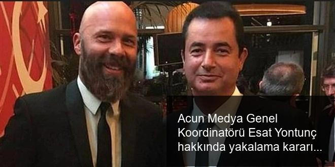 TV programcısı Acun Ilıcalı’nın yakın arkadaşı ve Acun Medya’daki iş ortağı Esat Yontunç hakkında yakalama kararı çıkarıldı. Sabah’ın haberine nazaran Yontunç’un, Survivor programının çekimleri kapsamında Dominik Cumhuriyeti’nde bulunduğu öğrenildi. Hakkında çıkarılan yakalama kararının hangi soruşturma evrakıyla ilgili olduğu konusunda ise şu ana kadar resmi bir açıklama yapılmadı.