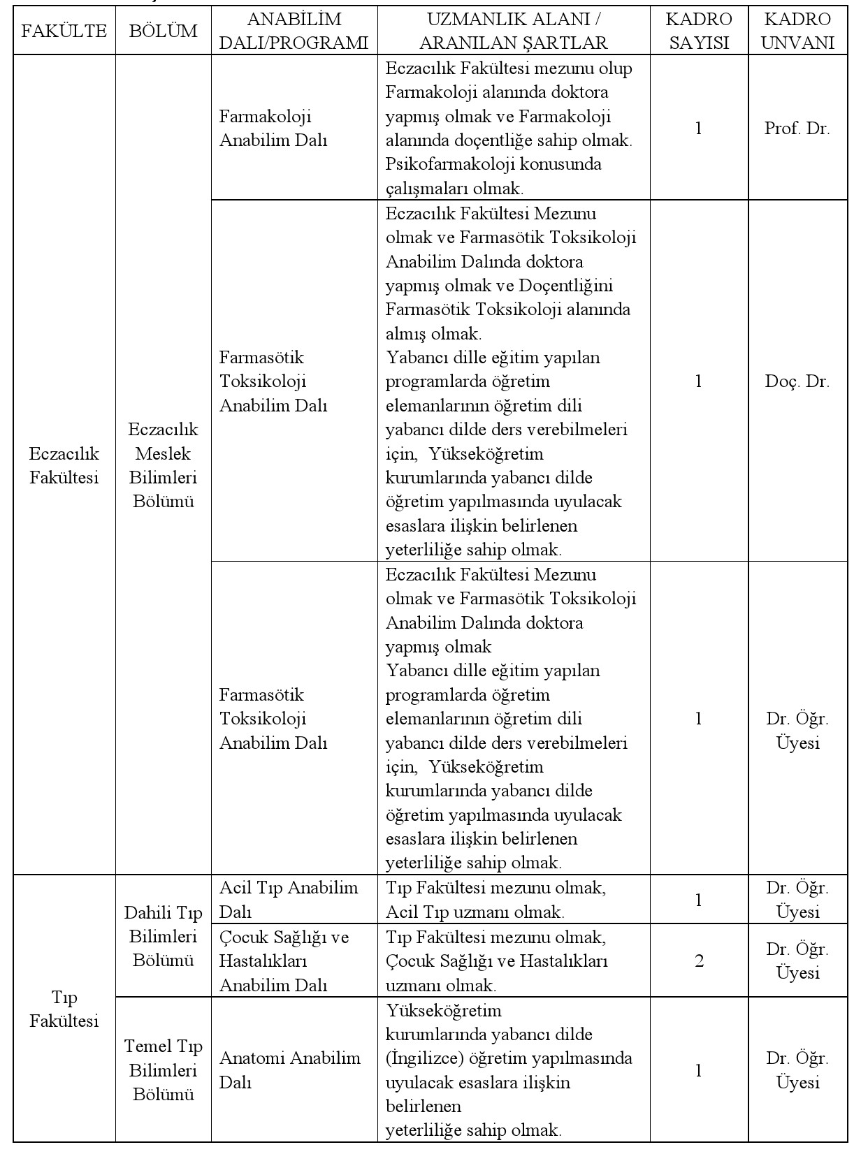 – Müracaatlar ilan tarihini takip eden 15 gün içinde Rektörlüğümüz İnsan Kaynakları Yöneticiliği’ne şahsen / posta yolu ile yapılabilir.