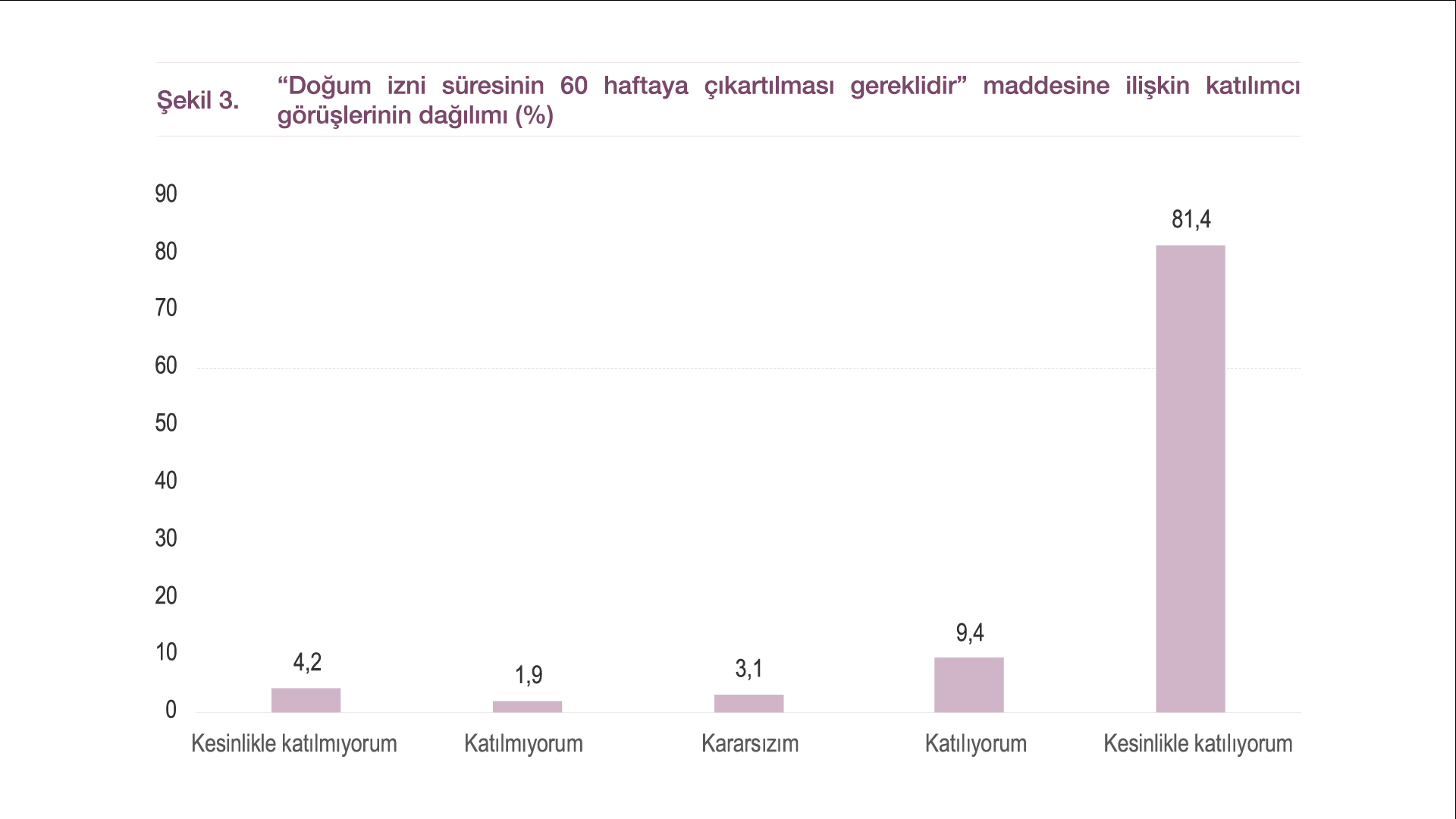- %90,8’i ise doğum müsaadesinin 60 haftaya çıkarılması tarafında açık bir talep ortaya koydu.