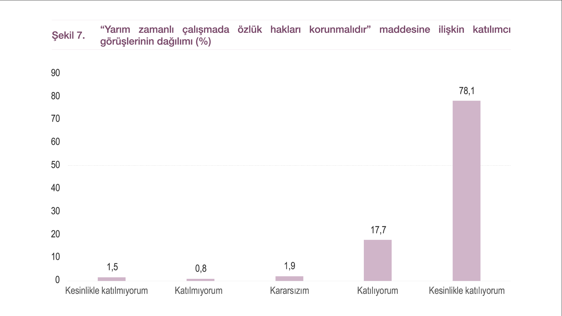 - Katılımcıların %95,8’i, yarım vakitli çalışmada maaş, emeklilik, terfi ve toplumsal hakların korunması gerektiğini belirtti.