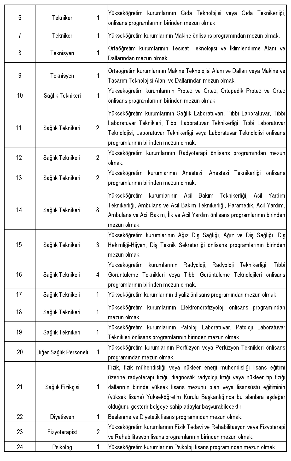 * Vazifeye başlayanlardan, aranan koşulları taşımadığı sonradan tespit edilenlerin mukaveleleri feshedilecektir.