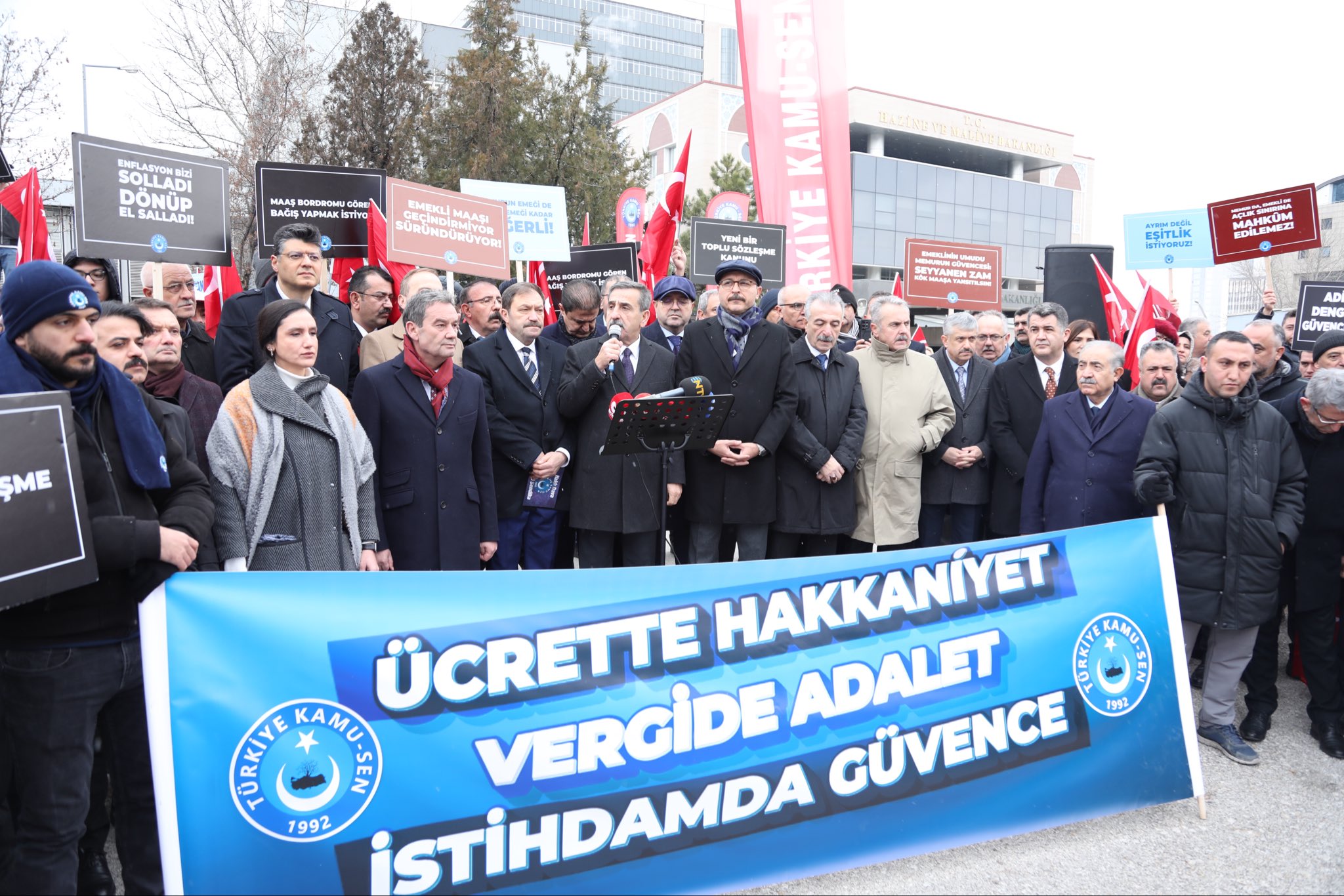 Türkiye Kamu-Sen Genel Lideri Başkan Kahveci, Hazine ve Maliye Bakanlığı önünde yaptığı basın açıklamasında kamu çalışanlarının ve emeklilerin yaşadığı ekonomik zorlukları gündeme taşıdı. 2025 yılı enflasyon datalarının akabinde maaşların yetersiz kaldığını vurgulayan Kahveci, hükümete somut tahlil teklifleri sundu.