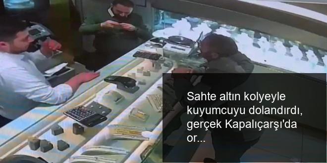 İş yeri çalışanı M.M.B, mihenk taşıyla yaptığı denetimde kolyenin beyaz altın olduğu kanısına vardı. Kolyeyi satın alan iş yeri çalışanı, şüpheliye yaklaşık 112 bin lira kıymetinde 2 tam altın ve bir ölçü nakit para ödedi.