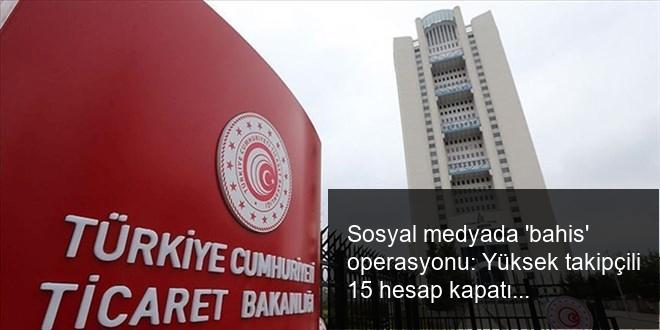 Ticaret Bakanlığı’ndan yapılan açıklamada, “Reklam Kurulu tarafından yapılan değerlendirmeler sonucunda yasa dışı bahis ve kumar reklamı yaptığı ve tüketicileri çeşitli yasa dışı sitelere yönlendirdiği tespit edilen yüksek takipçili 15 toplumsal medya hesabı hakkında erişim pürüzü önlemi uygulanmasına karar verilmiştir.” sözlerine yer verildi.