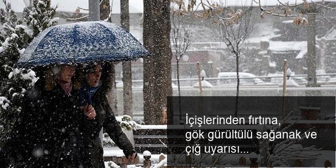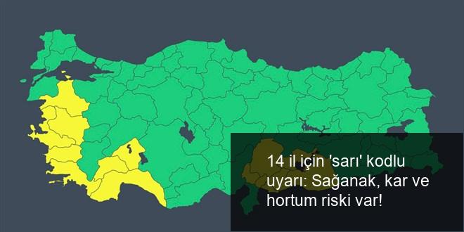 Hava sıcaklığının kuzey, iç ve batı bölümlerde artması beklenirken, Ege, Batı ve Doğu Akdeniz ile Güneydoğu Anadolu’nun batısında beklenen kar yağışı, fırtına ve sağanak nedeniyle 15 vilayet için “‘sarı” kodlu ikazda bulunuldu.