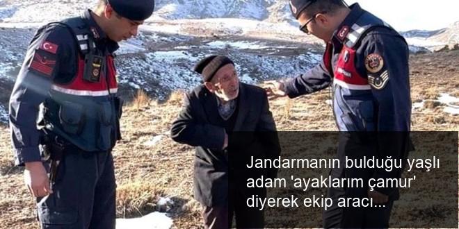 Jandarmanın bulduğu yaşlı adam ‘ayaklarım çamur’ diyerek ekip aracına binmek istemedi