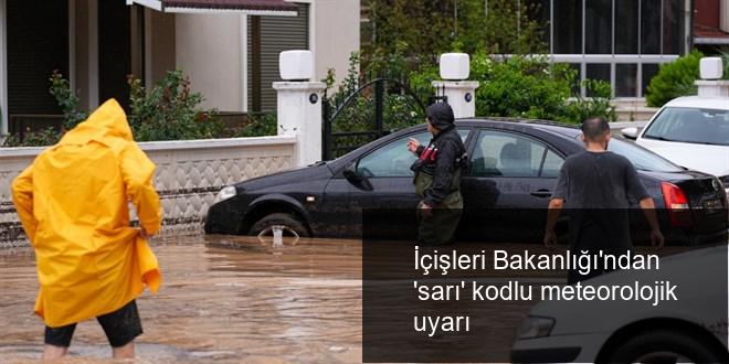 İçişleri Bakanlığı, bugün ve yarın beklenen kuvvetli sağanak ve kuvvetli fırtına nedeniyle birtakım vilayetler için “sarı” kodlu meteorolojik ikazda bulundu.