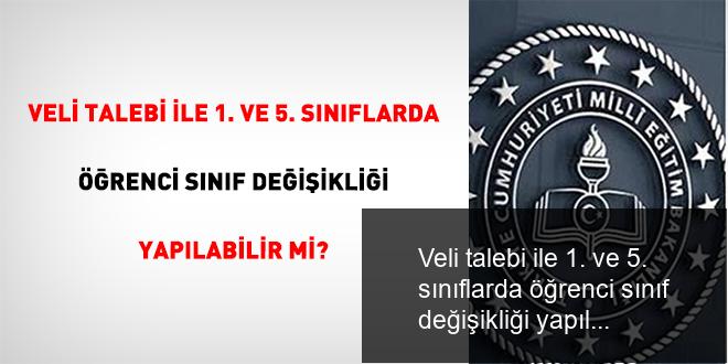 Veli talebi ile 1. ve 5. sınıflarda öğrenci sınıf değişikliği yapılabilir mi?