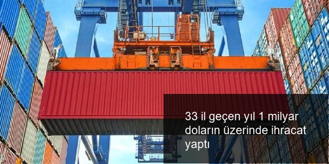 Türkiye’de, geçen yıl 33 ilin ihracatı 1 milyar doların üzerine çıkarken 46 vilayette ihracat artışı gerçekleşti.