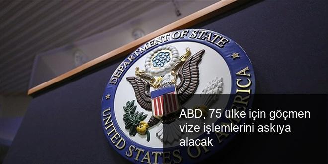 ABD Dışişleri Bakanlığı, “Göçmenlerinin ABD halkından kabul edilemez oranlarda toplumsal yardım aldığı 75 ülkenin göçmen vizelerine yönelik süreçleri askıya alınacak” dedi.