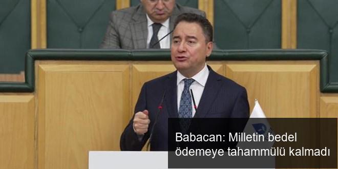DEVA Partisi Genel Lideri Ali Babacan, “Ekonomiyi keyfiliğe teslim ettiniz ve sonuç ortada. Artık çıkıp, ‘Sabredin’ diyorsunuz. Lakin bu milletin bedel ödemeye tahammülü kalmadı” dedi.