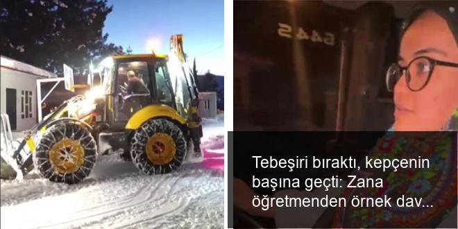 Öğretmenlik misyonu öncesinde babasının yanında büyük araç kullanan Zana öğretmen, 102 öğrencisi bulunan 4 derslikten oluşan okulun bahçesindeki karı temizledi.